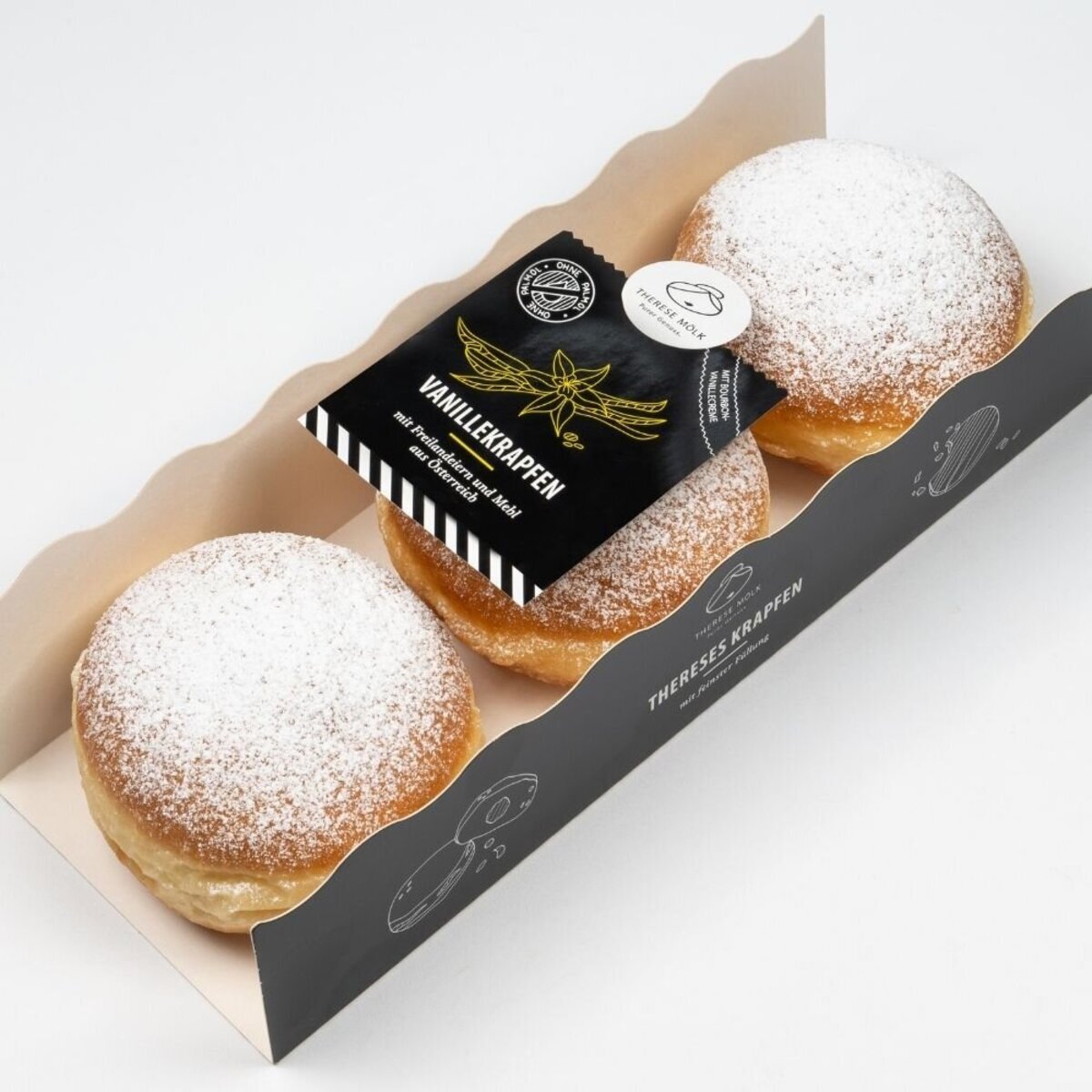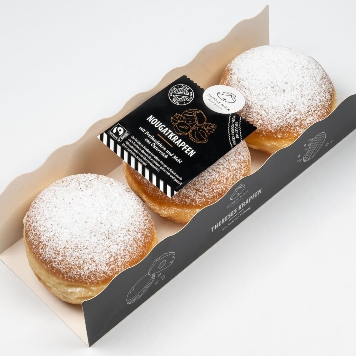 Die inneren Werte gehen bei Therese Mölk aber noch weiter. Denn Regionalität ist Trumpf. Deshalb werden die Krapfen aus der Bäckerei Therese Mölk aus 100 % Mehl, Butter und Freilandeiern aus Österreich gebacken. Alle Krapfen sind außerdem palmölfrei.