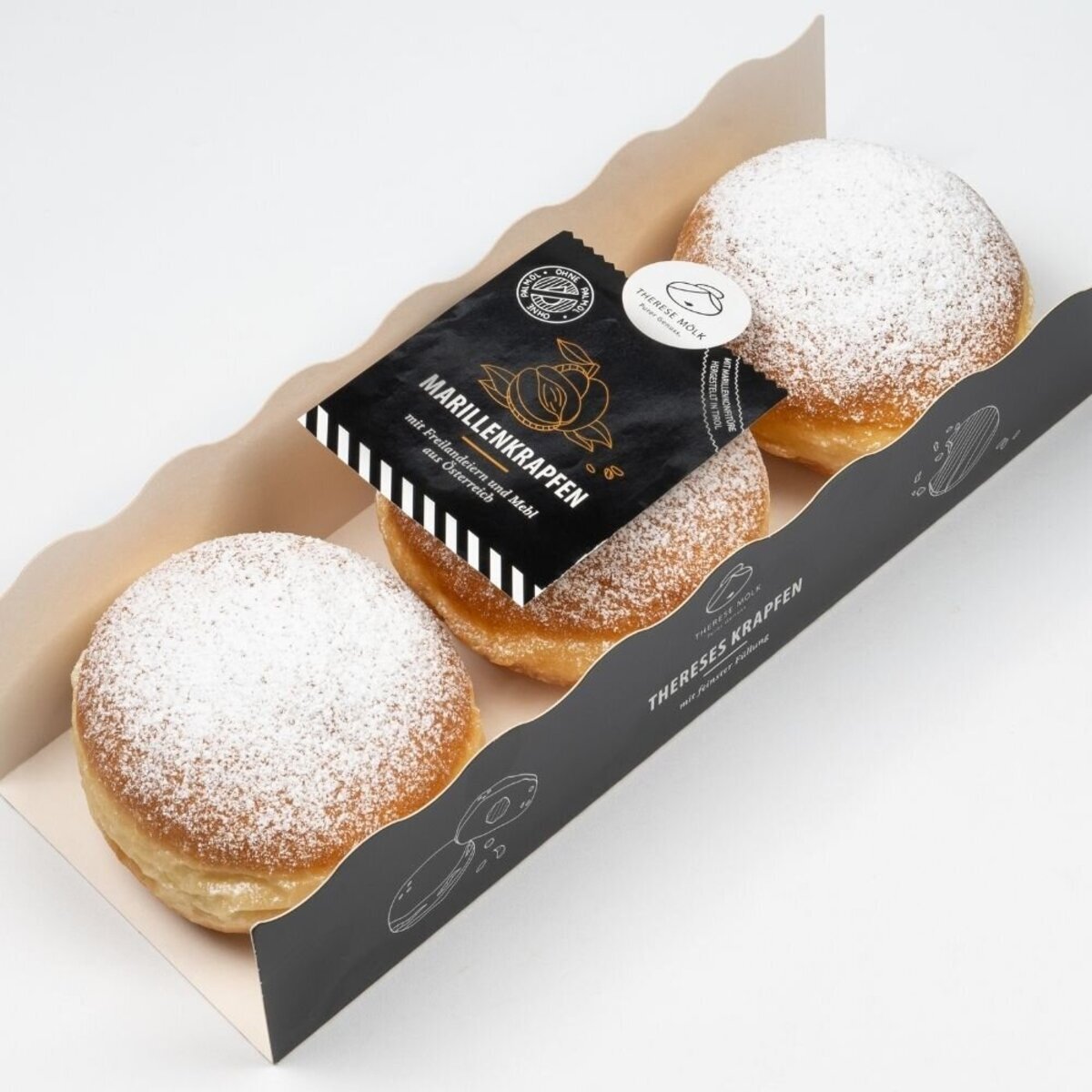 Thereses Krapfenvariationen werden in Völs bei Innsbruck mit Liebe gebacken. Sie haben alles, was Krapfen so köstlich macht – eine flaumig weiche Textur, eine wunderbar goldbraune Oberfläche und natürlich eine köstliche Fülle. Und die gibt es in einer ganzen Reihe von Variationen, von Erdbeere über Nougat bis hin zu Pistazie oder Eierlikör.